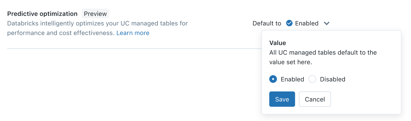 In just a click, you’ll get the power of AI-optimized data layouts across your Unity Catalog managed tables, making your data faster and more cost-effective.